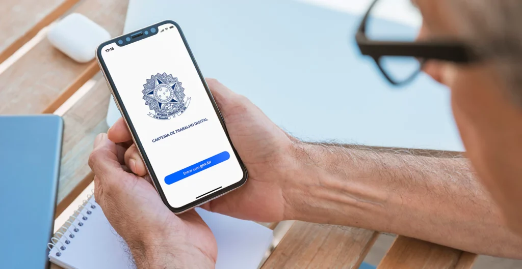 O Governo Federal disponibiliza o aplicativo Carteira de Trabalho Digital (Android/iOS). Em linhas gerais: